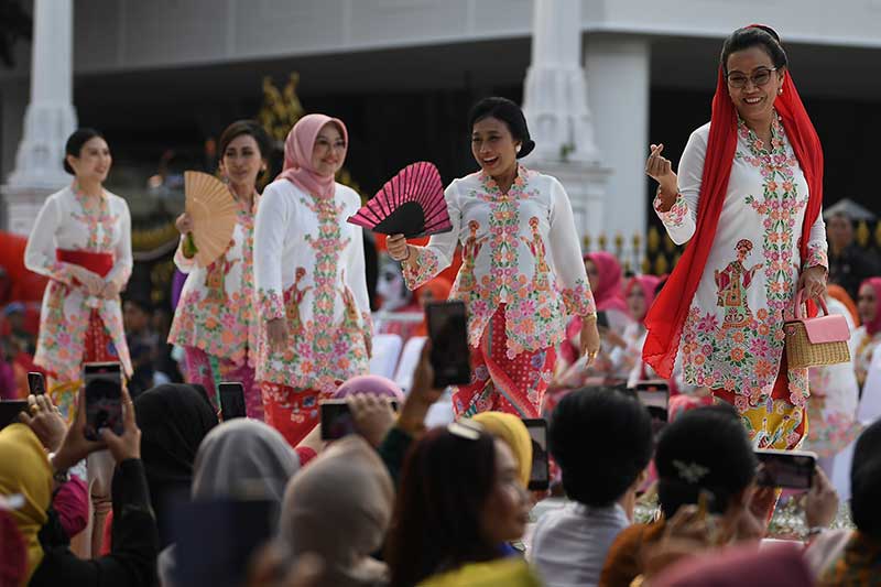 Para siswi mengenakan beragam kebaya, kutu baru, kebaya Kartini, kebaya encim. Ada yang polos, ada yang berbordir bunga-bunga, ada yang bermotif bunga-bunga. Ada merah, putih, biru, pink, hijau, krem. Atasan khas Indonesia itu dipadukan dengan kain batik aneka rupa: batik Solo, batik Cirebon, batik Pekalongan.