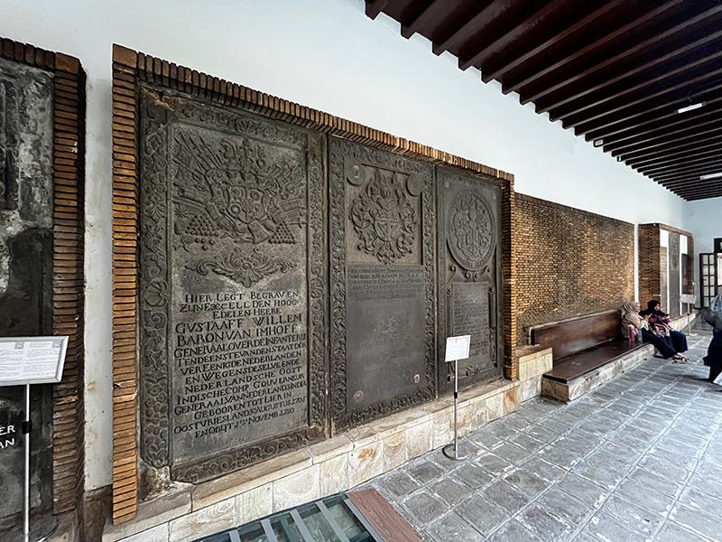 Beberapa peninggalan dari bangunan gereja ini masih ada lho sampai sekarang. Antara lain batu prasasti yang menunjukan bahwa saat masih menjadi sebuah gereja, dibawah gedung ini terdapat makam para jendral gubernur Hindia Belanda, seperti Gustaaf Willem van Imhoff, Abraham Patras, Jan Pieterszoon Coen, dan masih banyak nama lainnya.