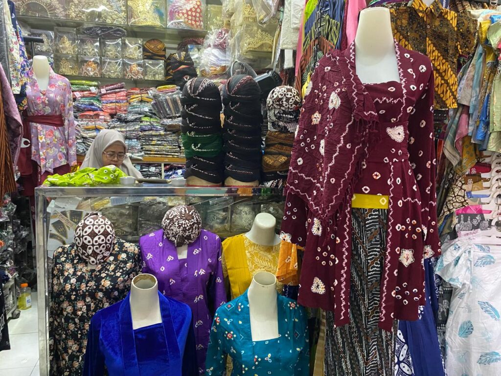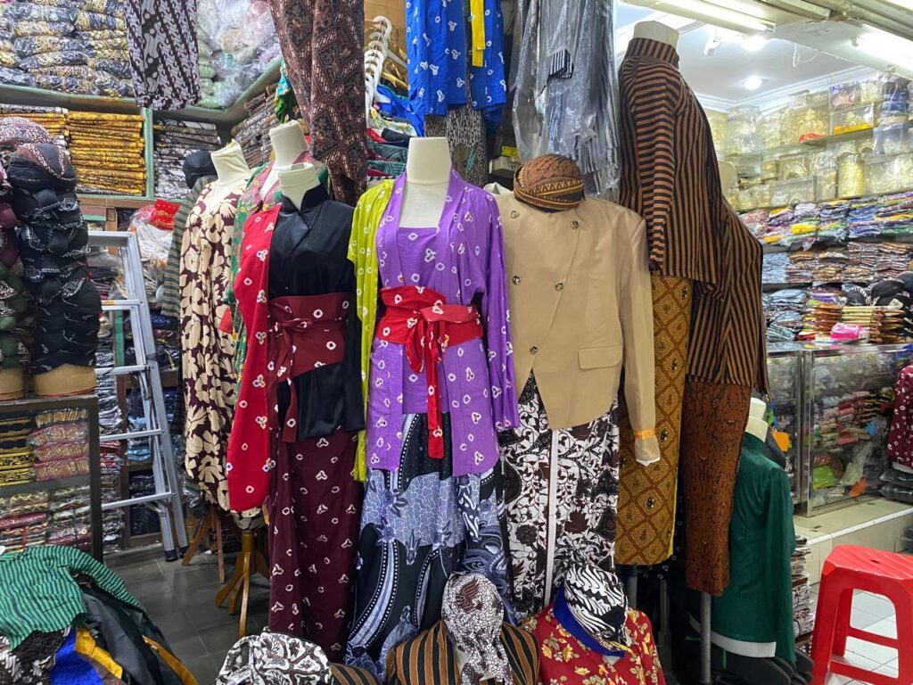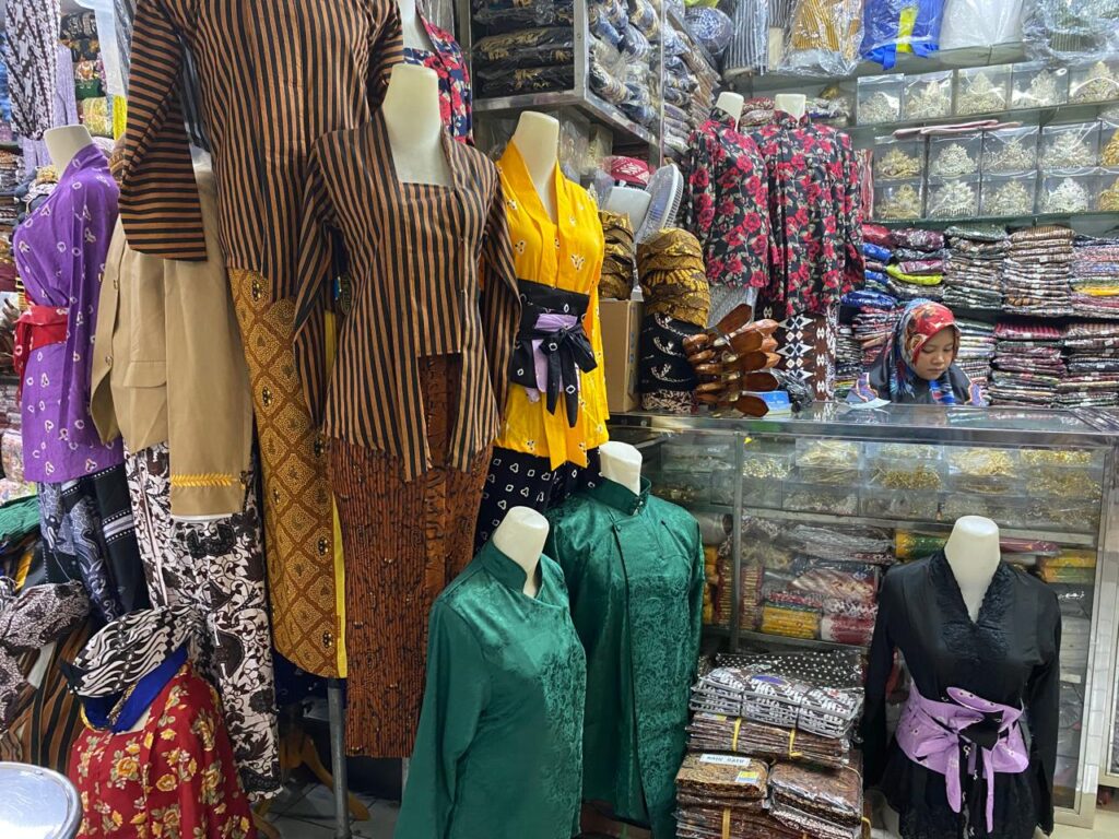 “Biasanya cuma laku beberapa biji, sekarang bisa sampai puluhan set kebaya per minggu,” cerita Bu Sri, salah satu pedagang kebaya di Beringharjo Kamis (22/5/2025). Siang itu ia sibuk melayani seorang ibu pembeli kebaya.